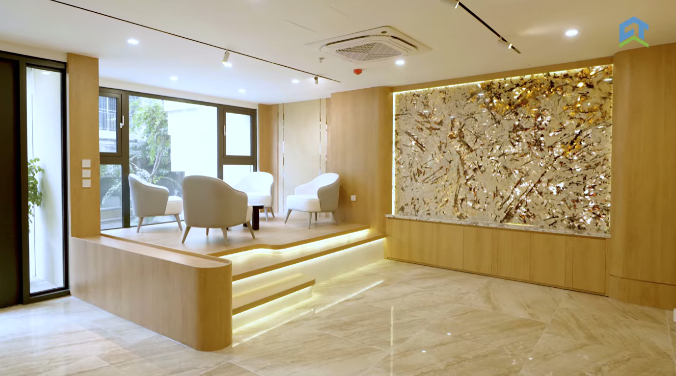 - Thi công hệ thống điện nước, trần, sàn, tường